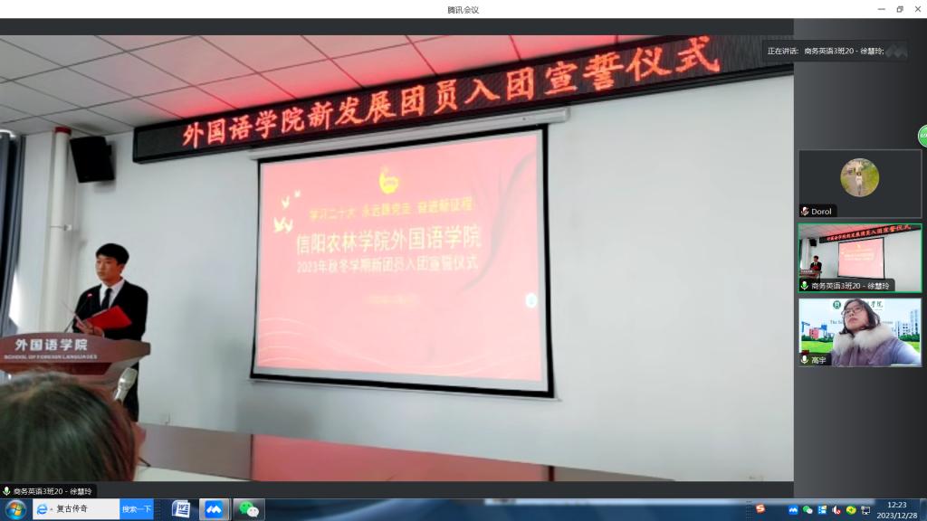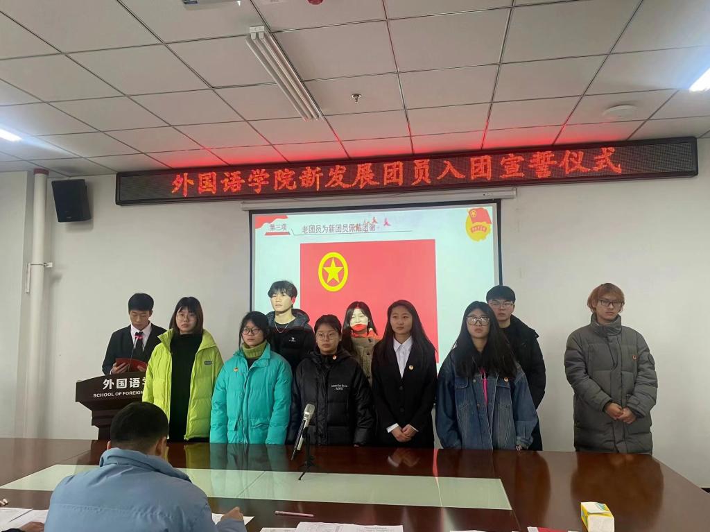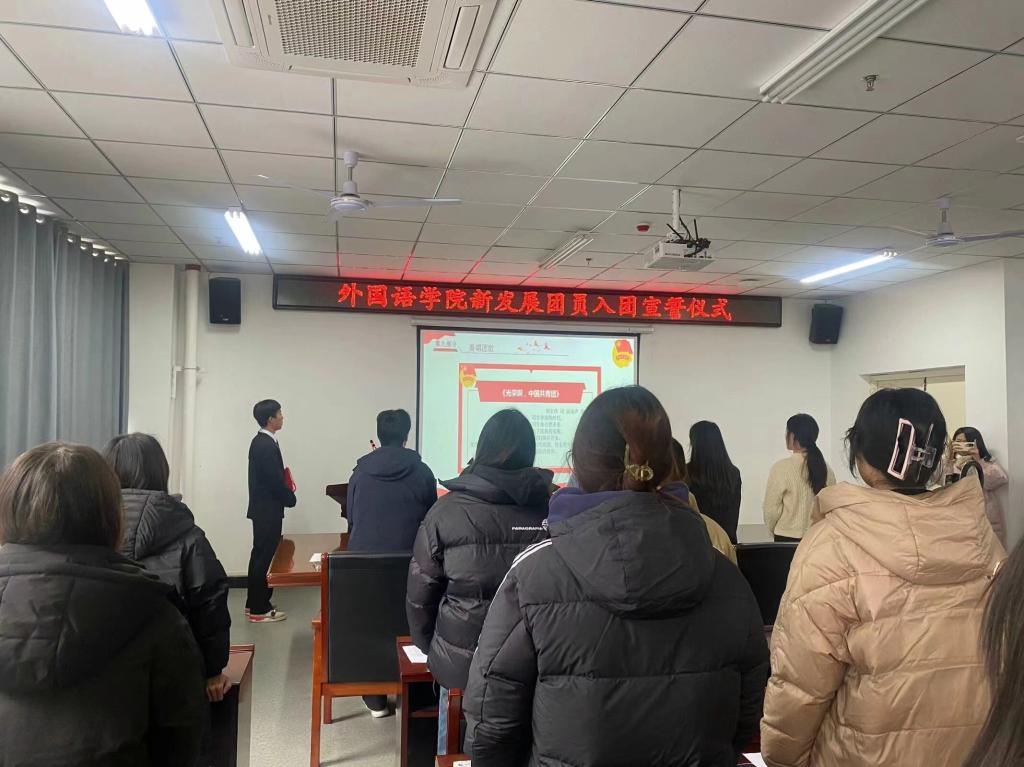 12月28日中午,外国语学院于文学艺术楼402举办2023年秋冬学期新团员入团宣誓仪式。外国语学院团总支书记高宇,新发展团员以及部分团员代表参加。