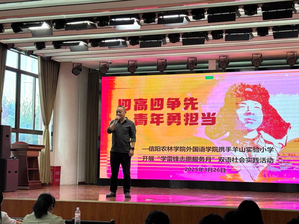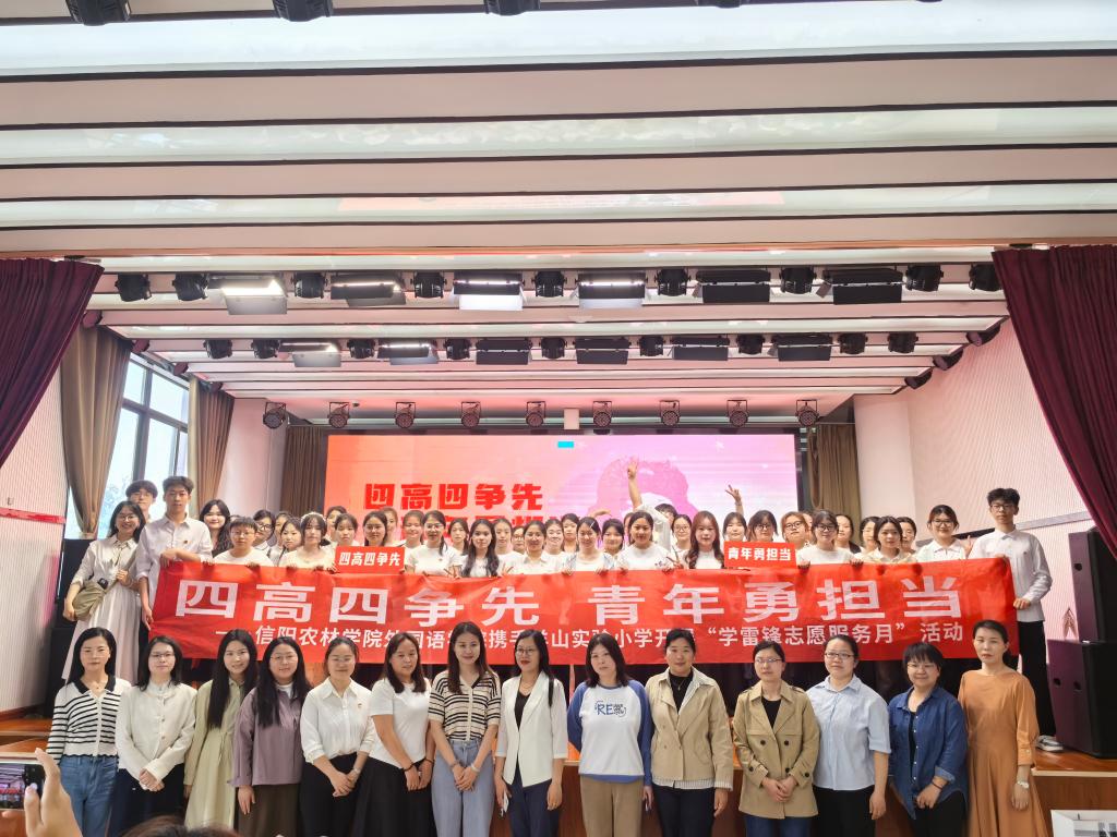 为全面贯彻习近平总书记关于志愿服务的重要论述和重要指示批示精神,外国语学院于3月26日下午赴羊山外国语小学开展了“四高四争先,青年勇担当”主题双语社会实践活动。外国语学院院长芦晓莉、团委书记高宇、商务英语教研室副主任赵瑞、教师代表张文璐、李雪华、吴均、马艳、张淑娴、李金慧、宋昕、胡欣欣、胡翠、王玉蝶和学生代表共同参与了本次活动。