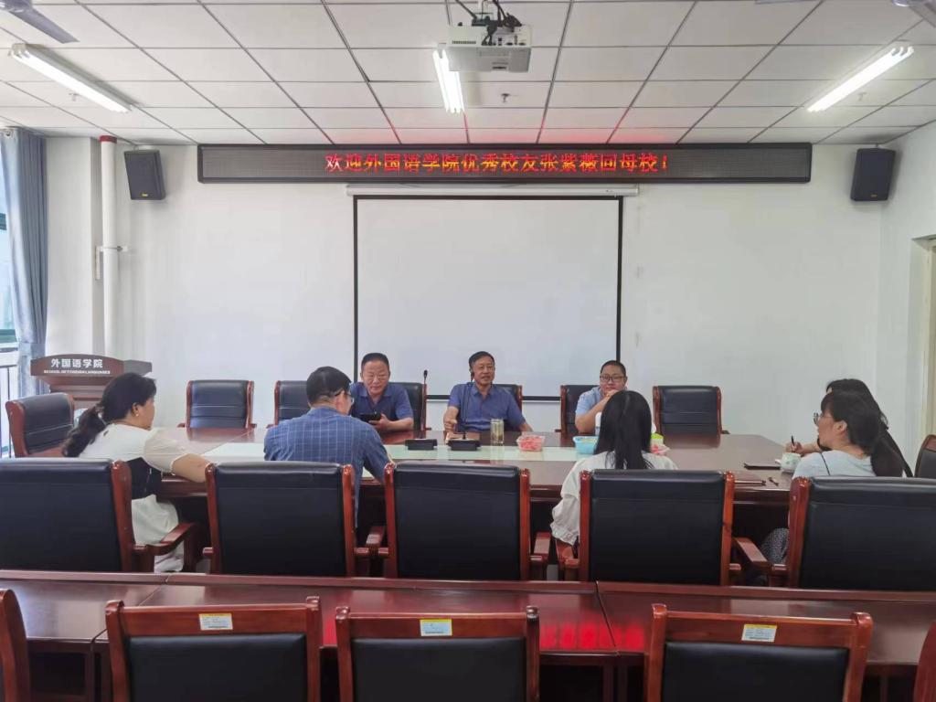 紫薇表示:在外国语学院的学习过程中,不仅学习到了丰富的专业知识,也培养了正确的价值观。党总支书记张志强代表学院对校友的来访表示感谢,并欢迎校友在条件允许的情况下常回来看看。