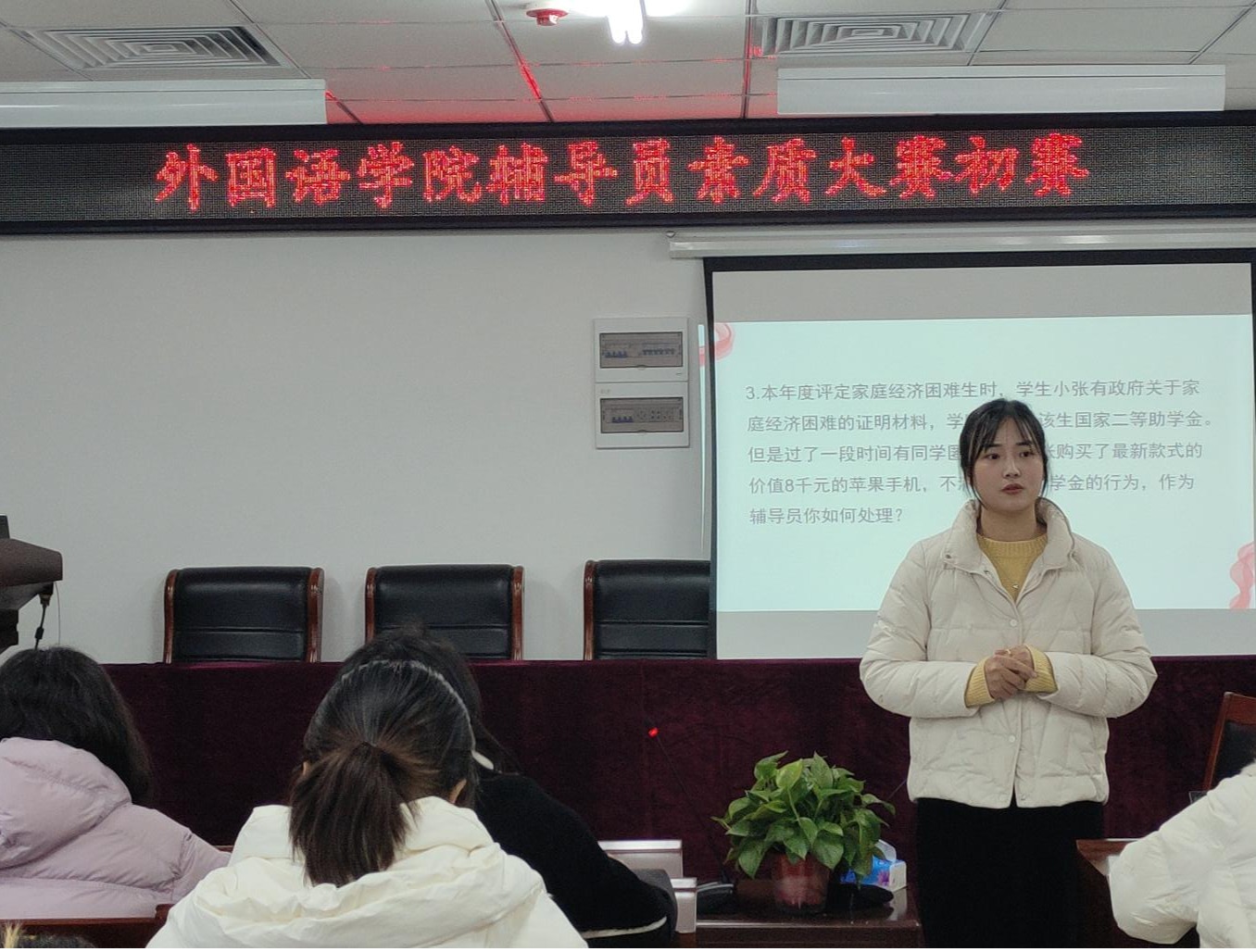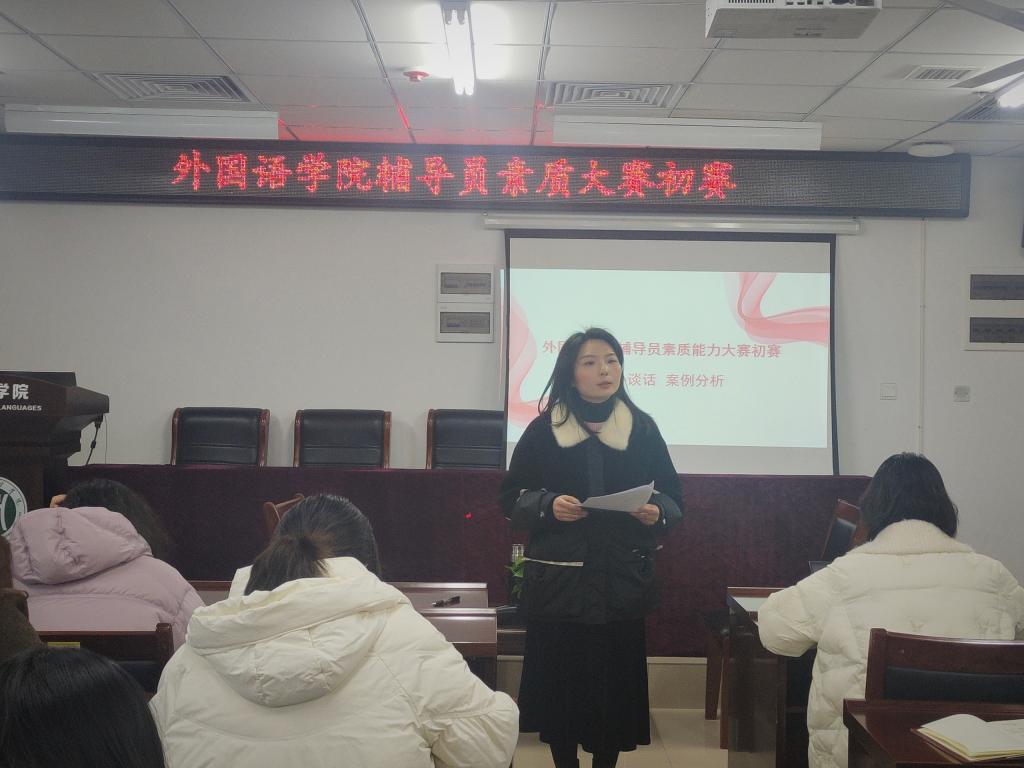 为进一步加强辅导员队伍建设,提升辅导员的职业技能和工作水平,外国语学院经广泛宣传动员、精心组织筹备,顺利完成了辅导员素质能力大赛院级初赛。