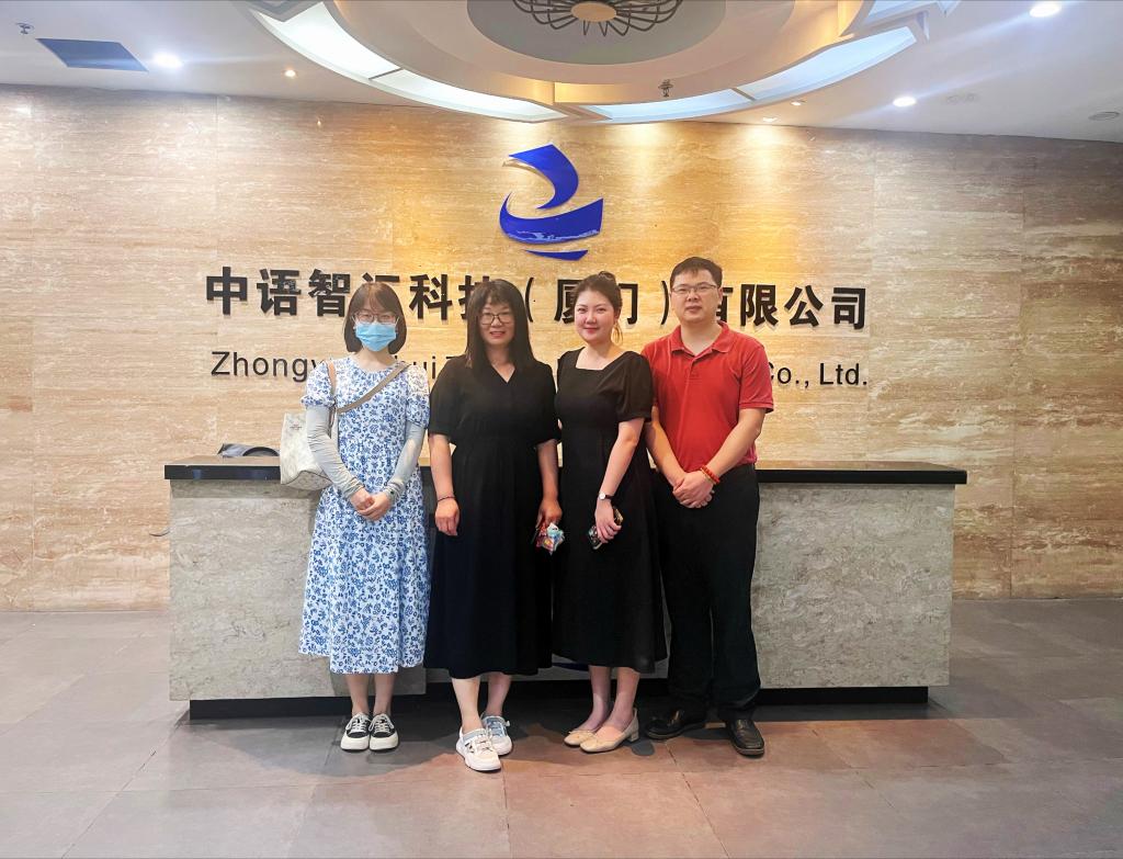 为发挥学校和企业的各自优势,探究共同培养社会与市场需求的复合型外语人才的路径与方式,2022年7月20日下午,外国语学院商务英语教研室主任张霞带领教研室教师高宇前往厦门市中语智汇科技公司(以下简称“中语智汇”)进行企业考察,对校企合作事宜进行了调研洽谈。
