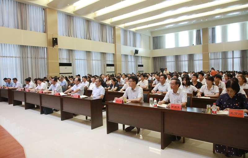 7月1日下午,市委常委、常务副市长蔡松涛来到beat365在线平台官网,与广大师生共同重温习近平总书记在庆祝中国共产党成立100周年大会上的重要讲话精神,并为大家讲授了一堂党史学习教育专题党课。党委书记余作斌、校长邢勇和其他在校校领导、党委委员,以及全体中层正职干部、师生党员代表共300余人一同认真聆听了这堂精彩生动的党课。党课由余作斌主持。