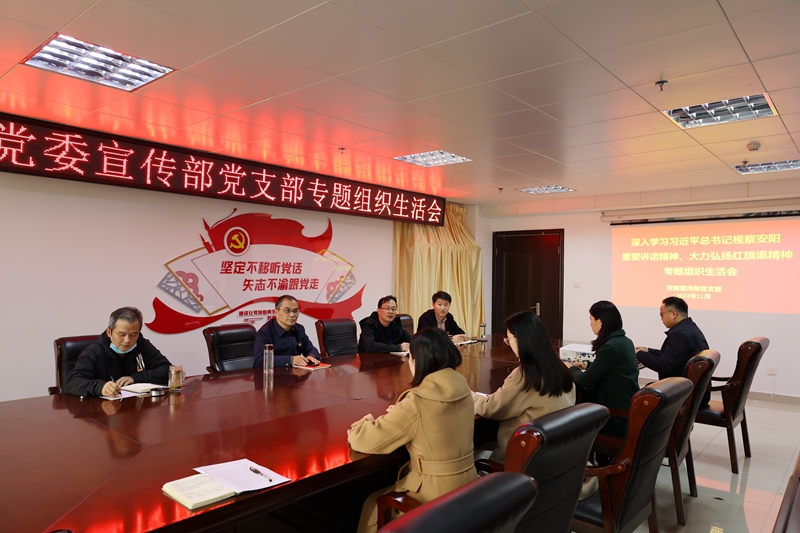 11月23日,党委宣传部党支部召开了以“深入学习习近平总书记视察安阳重要讲话精神,大力弘扬红旗渠精神”为主题的专题组织生活会,全体党员参加会议,党委副书记王庆兵以普通党员身份参加组织生活会。