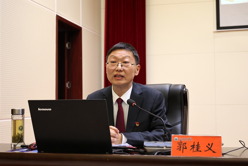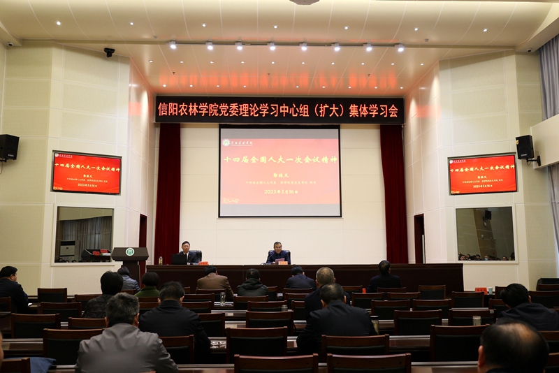 3月16日下午,beat365在线平台官网在图书馆六楼报告厅召开党委理论学习中心组(扩大)学习会,十四届全国人大代表、beat365在线平台官网茶学院院长郭桂义传达学习全国两会精神。党委副书记王庆兵主持会议,校党委理论学习中心组成员、全校中层干部参加学习。