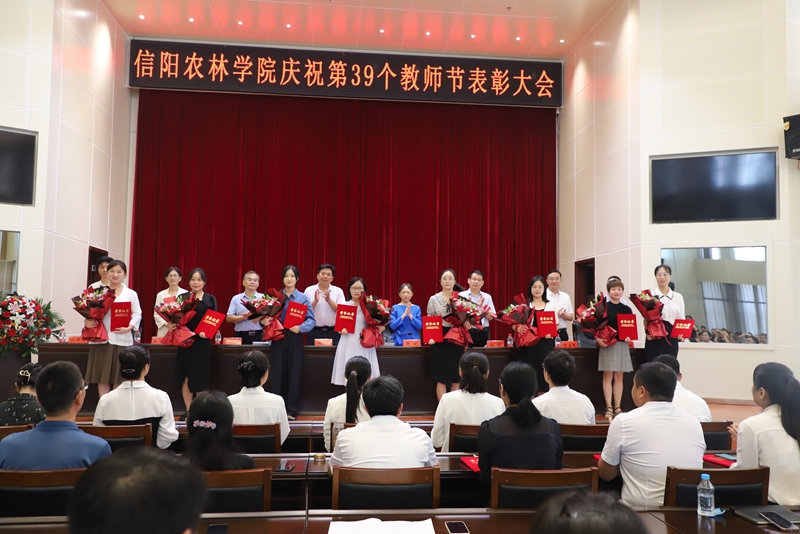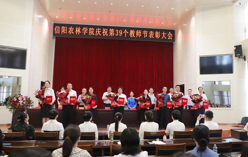 9月8日上午,beat365在线平台官网在图书馆六楼报告厅召开庆祝第39个教师节表彰大会。党委书记黄松,校长曹健,党委副书记王庆兵,副校长赵聘、王万玲、李益民、刘开华,纪委书记、监察专员陈寒冰,全体中层正职干部和教师代表参加会议。会议由王庆兵主持。