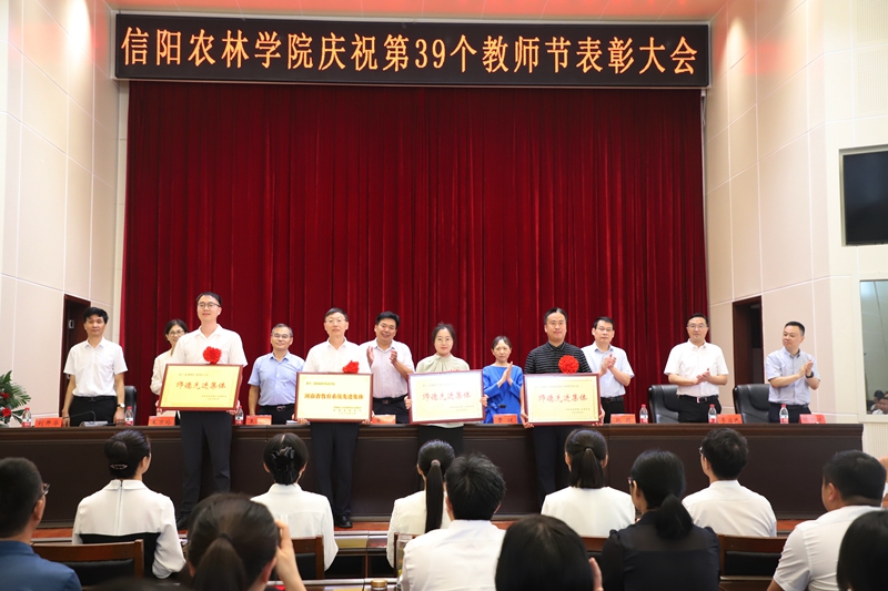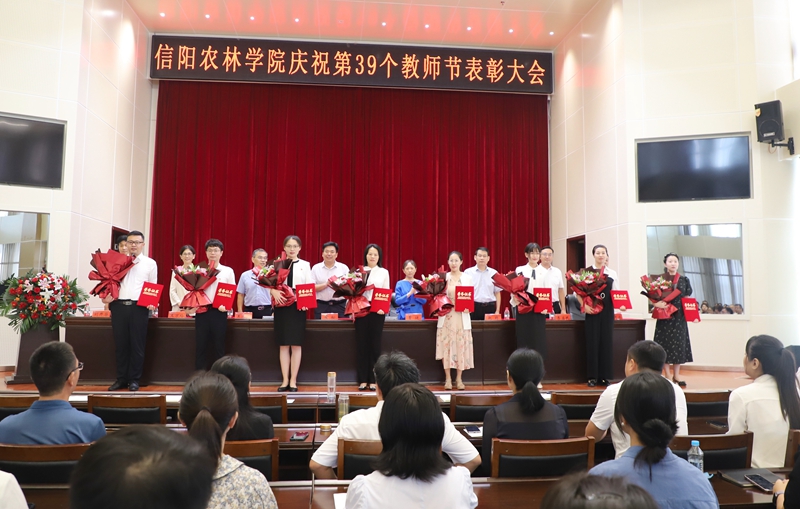 赵聘、刘开华分别宣读获厅级及以上荣誉称号的先进集体和个人名单、校级荣誉称号的先进集体和个人名单。与会领导为受表彰的单位和个人颁奖并献花。全国高校教师教学创新大赛获奖教师邢淑婕、省级优秀教师代表伦峰作典型发言。