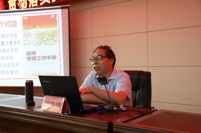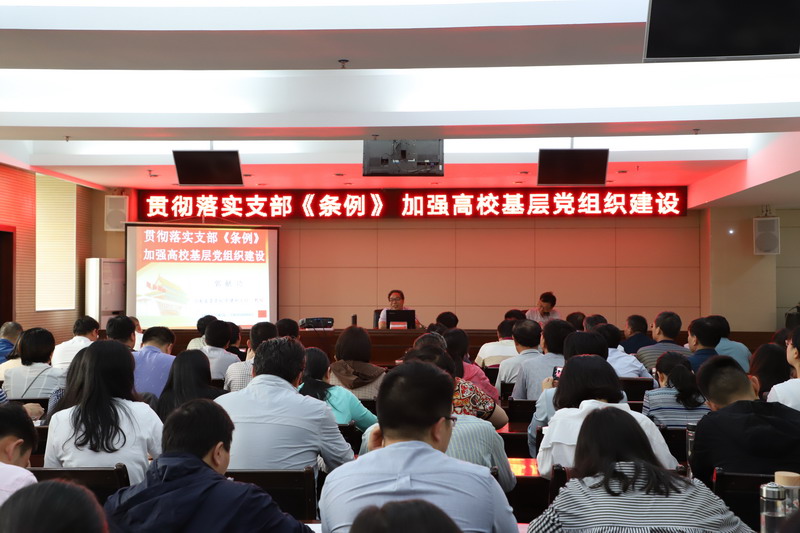5月31日下午,beat365在线平台官网邀请省委党校党建教研部主任郭献功教授来校为党支部书记培训班作了题为《贯彻落实支部< 条例>,加强高校基层党组织建设》的辅导报告。报告会由党委副书记刘光生主持,全体党总支书记、党支部书记、专职组织员参加了会议。