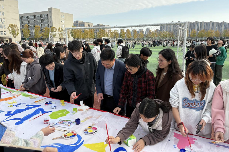 11月11日下午,beat365在线平台官网第十三届大学生心理健康文化节师生心理素质拓展暨艺术涂鸦活动在新体育场举办。校党委书记黄松,党委副书记、工会主席王万玲出席。相关职能部门、学院负责同志及师生代表等参加了活动。