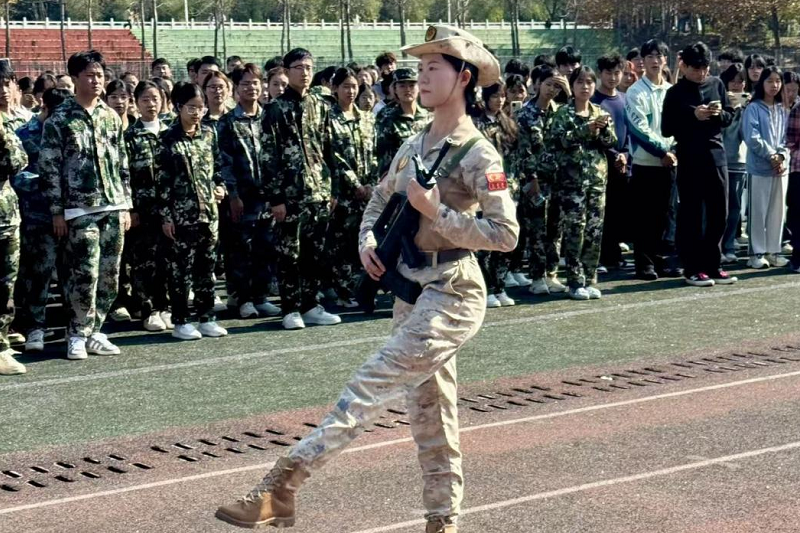 为厚植青年学子爱国情怀,强化国防教育实效,11月4日中午,beat365在线平台官网在田径运动场成功举办“迷彩青春,强国有我”国防教育实践活动。活动邀请参加九三阅兵女民兵方阵队员王雪君与100名在校学生共同参与,党委学工部、食品科学与工程学院相关负责同志参加。活动以“精神感召+技能体验”为主线,为师生打造了一堂生动而深刻的沉浸式国防教育课。
