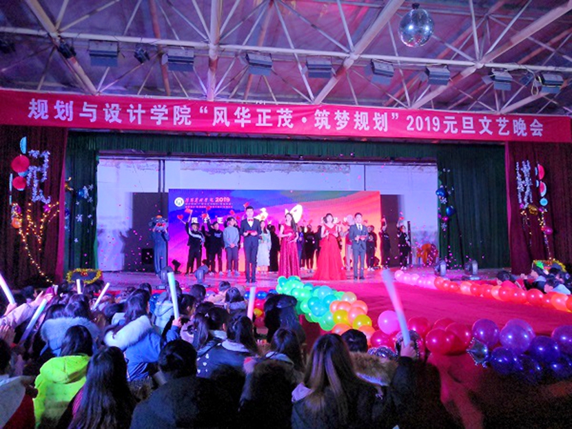 12月26日晚,规划与设计学院2019元旦文艺晚会在大学生活动中心举行。规划与设计学院院长胡正元、党总支书记王国艳、部分师生齐聚一堂,共迎元旦。院长胡正元为晚会致辞。随后,开场舞《创造101》正式拉开了序幕,相声《有话好好说》、歌曲《牵丝戏》《红玫瑰》、舞蹈《小人舞》、走秀表演《超级T台秀》等节目展现了当代大学生蓬勃向上、与时俱进的精神风貌。