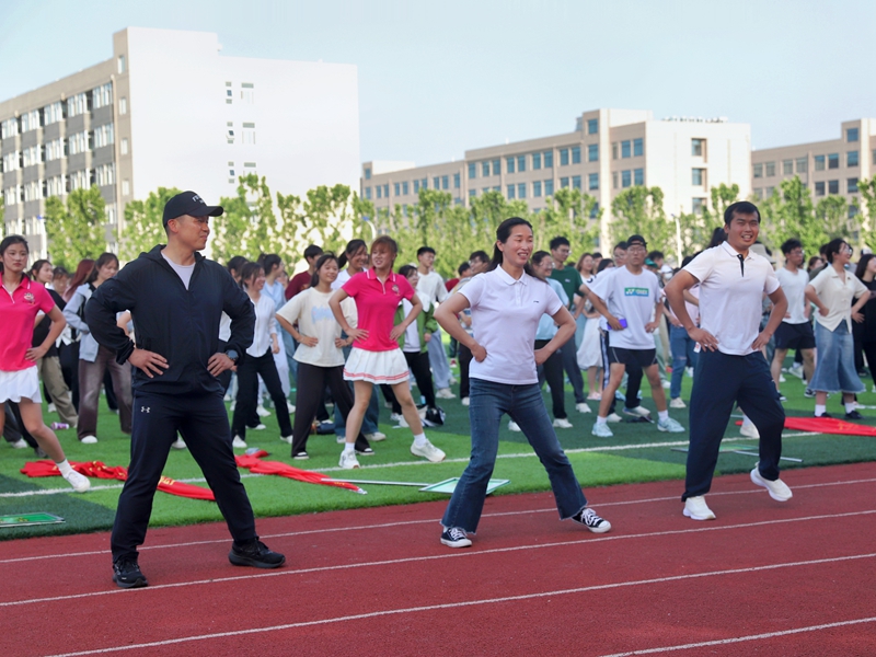 启动仪式后,全体师生开展了此次全民健身活动月首个主题——“韵”育健康、“律”动精彩集体韵律操,场面欢快热烈,处处洋溢着青春、阳光、活力、律动的美好气息。
