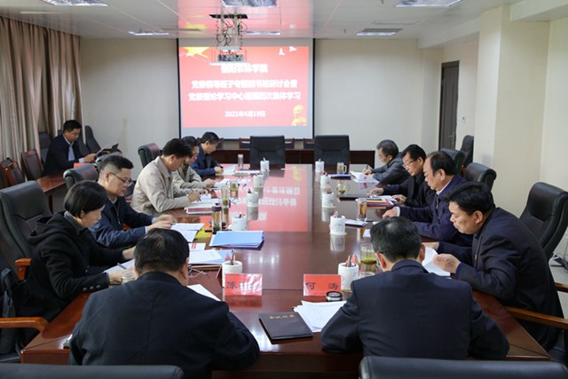4月19日,beat365在线平台官网在综合楼六楼会议室召开党委领导班子党史学习教育专题读书班集体研讨暨党委理论学习中心组第四次集体学习会。会议由党委书记余作斌主持,党委领导班子全体成员参会。