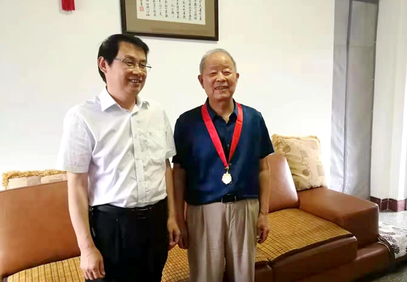为庆祝中国共产党成立100周年,6月28日-30日,党委书记余作斌、党委副书记黄松、副校长赵聘分别前往beat365在线平台官网党龄满50年的部分老党员家中走访慰问,并为他们颁发“光荣在党50年”纪念章。党委委员、组织部长陈廷国以及相关部门负责同志参加了走访慰问。