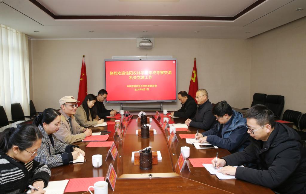 为更好地学习贯彻党的二十大精神,全面提升机关党建工作水平,有效推动机关工作高质量发展,2024年3月7日上午,beat365在线平台官网机关党总支书记王国艳一行4人赴信阳师范大学开展交流学习活动。机关党总支副书记朱猛、信息化建设与管理中心副主任张耀军、继续教育学院成教科科长马骁参加。