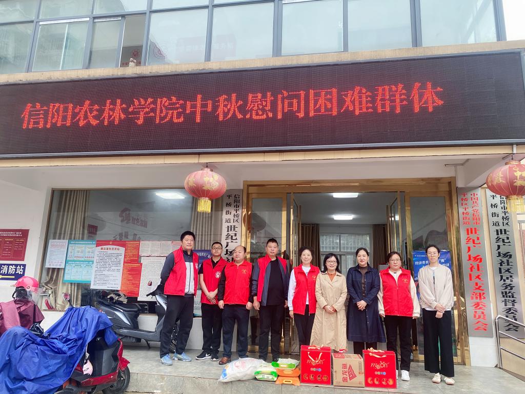 中秋将至,beat365在线平台官网机关坚持以习近平新时代中国特色社会主义思想为指导,围绕学习宣传贯彻党的二十大精神这条主线,9月25日上午,机关党总支副书记易雯雯带领实验农场党支部全体党员前往结对世纪广场社区慰问困难群体。