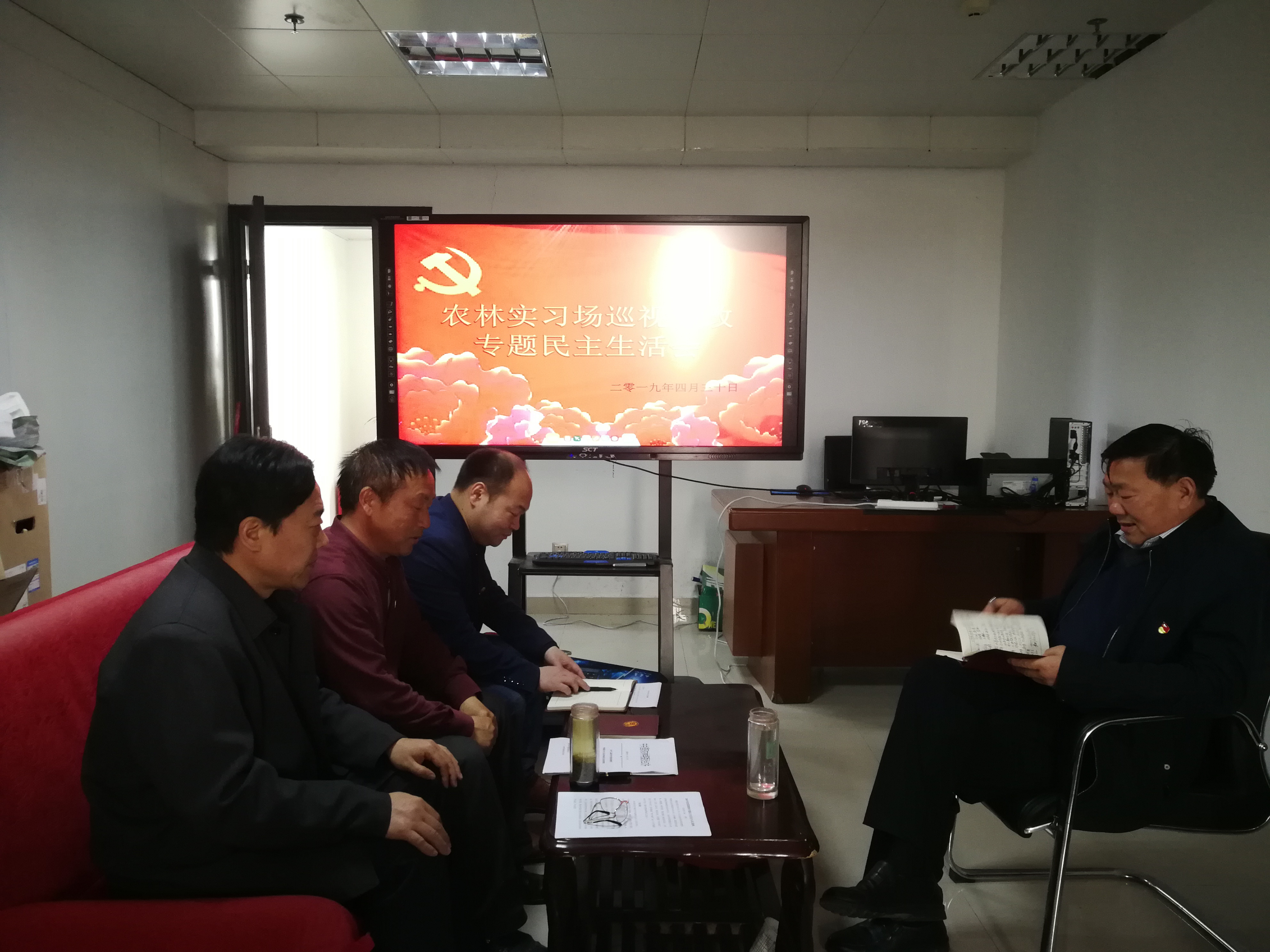 按照学校党委《关于认真开好省委巡视整改专题民主生活会和组织生活会的通知》(信农党〔2019〕21号)精神要求,2019年4月30日下午,农林实习场党支部在行政办公楼第九会议室召开了省委巡视整改专题组织生活会。会议由党支部书记胡汉升同志主持, 机关党总支委员陈庭国同志到场指导,支部田野、殷东林同志参加了会议。