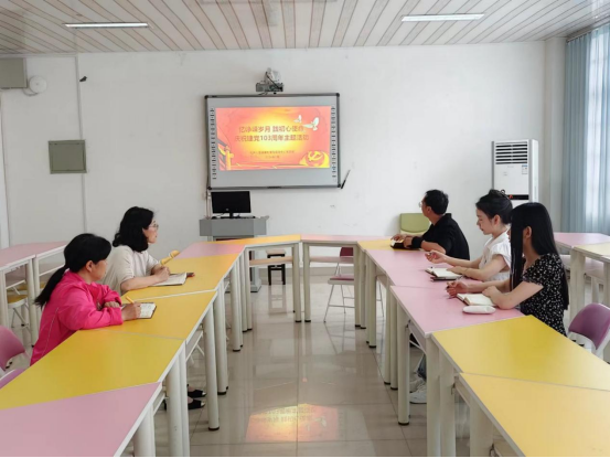 7月1日上午,机关心理健康与咨询中心党支部在实验楼2B501开展忆峥嵘岁月 践初心使命——庆祝建党103周年主题党日活动,机关心理健康中心党支部全体党员参加。
