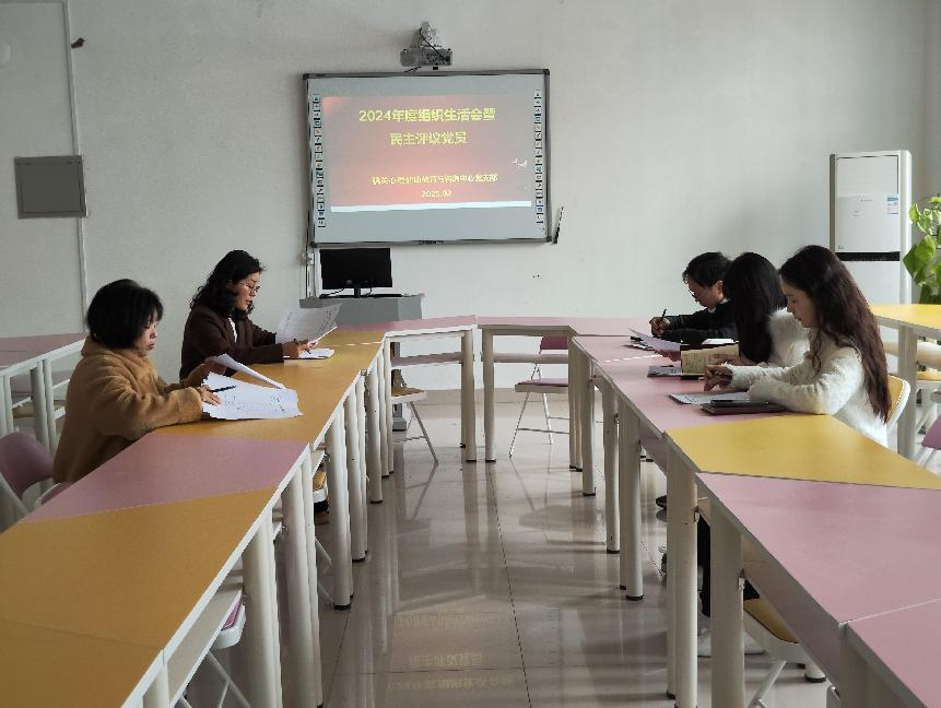 机关心理健康教育与咨询中心党支部于2025年2月27日下午在实验楼2B501室召开民主评议会,心理中心党支部全体党员参加了会议,会议由心理中心党支部书记朱建梅主持。