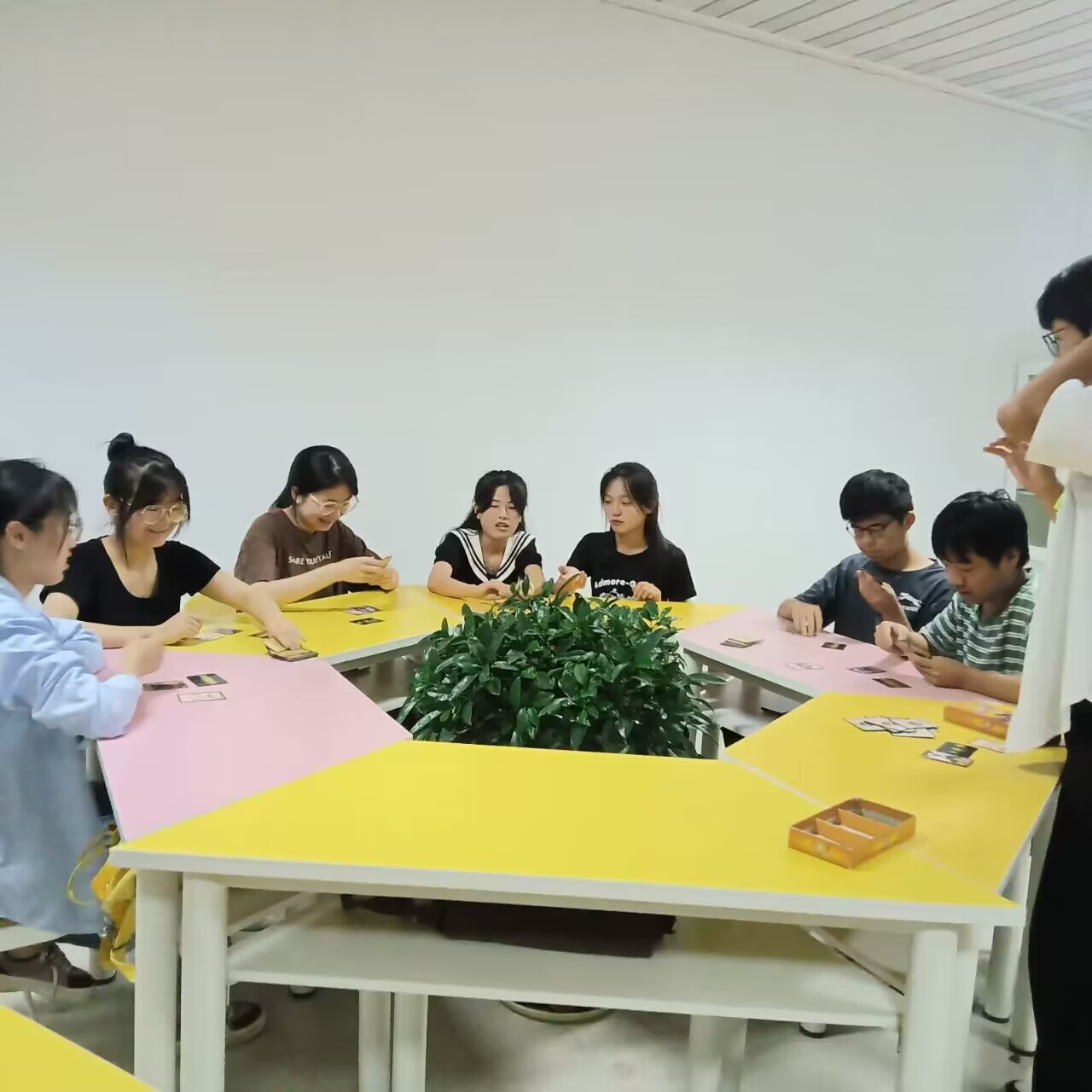 第三同学们自行组合成三个团体进行后三个游戏活动环节。在柔和的音乐背景下,同学们进行了愉快的游戏互动。在游戏互动环节中同学们积极进行游戏互动,并通过自己和其他游戏中成员的配合来积极完成游戏中任务,既锻炼了自己的逻辑思维能力又提升了同学们团队协作能力。同时随着游戏的进行也是同学们逐渐缓解压力,驱散心中烦恼。