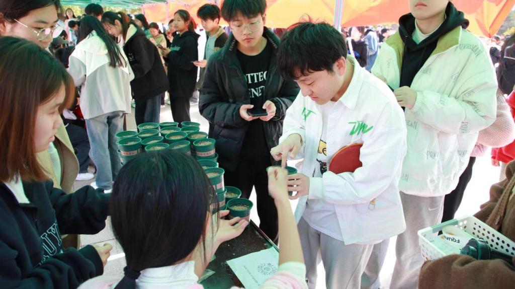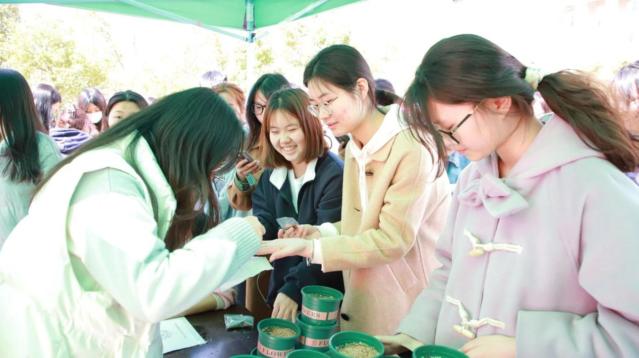 本次举办的是“我与花儿共成长”系列活动的第一场——花种领养,活动现场免费向广大师生发放花种、花盆和培养土1000余份,包括有矢车菊、波斯菊、三色堇、角堇、百日草、月见草、大滨菊等多种花材。活动由线下培育花种和线上分享两部分组成,让领养者用照片、视频和文字记录下一颗颗种子从种下到发芽、再到开花的过程,每天悉心照顾,怀揣期盼,记录花种的成长与变化,分享自己陪伴花儿成长的心情与感悟,与花儿共同成长。线上交流则突破了时间、地点的局限,实时分享,在同学们心中种下了希望与力量。一方面,同学们通过细心照顾花种,与植物共同成长,享受植物的陪伴,感知生命的神奇历程,在动手操作和观察过程中培养自身的责任意识,提高对生命成长的关注。另一方面,同学们藉由群平台,通过种植花卉、观察生长过程等实践方式,每日记录花种的成长与变化,分享自己陪伴花儿成长的心情与感悟,缓解生活的压力和焦虑,加深了对生命的理解,激发对生活的昂扬热情与希望。
