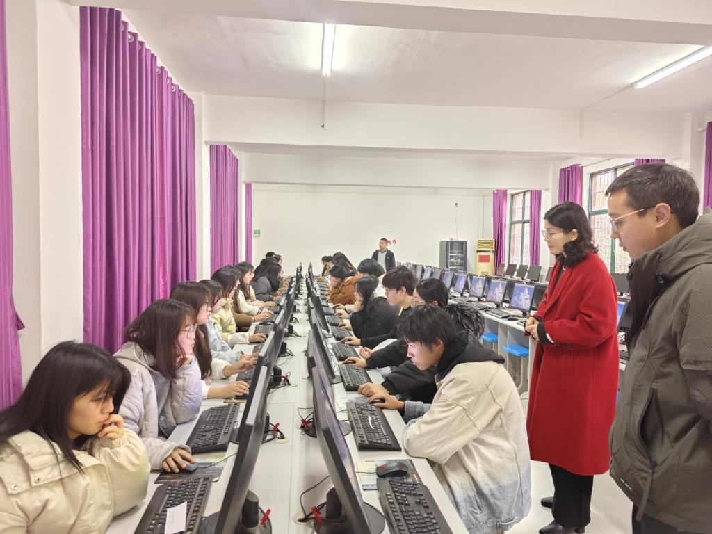 12月7日开始,朱建梅对施测样本校信阳市光山县文殊高中检查测前准备工作落实情况,对人员安排、培训情况、测试场地准备、网络保障、实施方案与应急处置预案等进行了检查。并于12月9日-13日监测实施周内,前往测试现场进行实地视导工作,对样本校的校长/副校长、监测员、信息员等有关人员进行随访,完整查看了全部场次的监测过程。