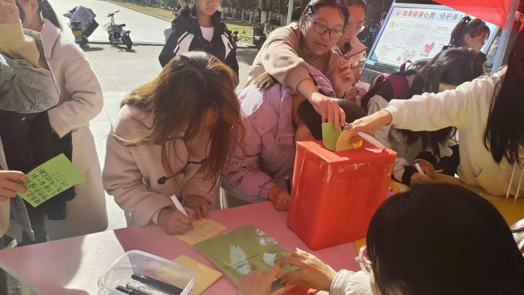 活动期间,同学们匿名在纸条书写自己的心声和烦恼,并放入指定的盒子中,心理老师随机抽取一些纸条解读并提供心理调整方法。通过这种方式,从而帮助同学们宣泄情绪,获得理解和支持。此外,为鼓励同学们积极参与,参与活动的同学都有机会获得一份精美的礼品。