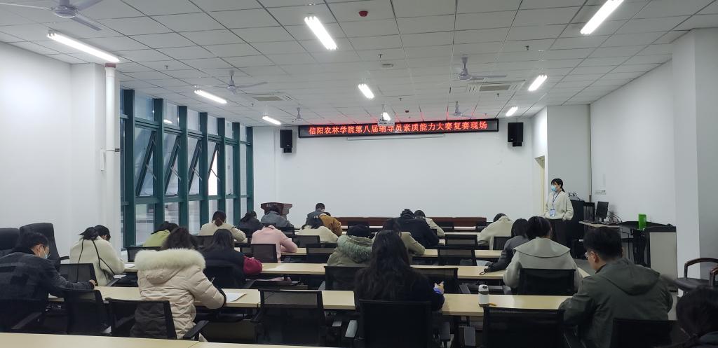 为深入学习宣传贯彻党的二十大精神,全面落实习近平新时代中国特色社会主义思想,进一步提升beat365在线平台官网辅导员的理论水平、专业素养和工作能力,beat365在线平台官网第八届辅导员素质能力大赛(笔试)于11月22日下午在学生服务中心202会议室举行。经学院初赛推选,共有22名专兼职辅导员参加了此次复赛(笔试)。