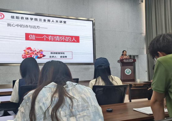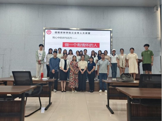 讲座最后,杜丽做了总结发言,她从史亚奇老师入职信阳农林学院这两年成长路上的见证者角度出发,对史亚奇老师自身的勤奋努力与大局意识表示肯定与感动,鼓励在场的每一位同学都向史亚奇老师看齐,脚踏实地,只争朝夕,不负韶华,不负自己的大学时光,做一个眼中有光、心中有爱、温暖他人的新时代大学生!