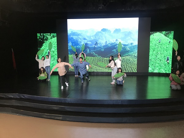 中国革命的历史画卷,闪耀着光辉灿烂的大别篇章。作为著名的革命老区,信阳为中国革命的胜利作出了重大贡献,在中国共产党历史上具有重要地位。为更好地利用信阳革命老区的红色基因库,充分挖掘公共艺术课程蕴含的美育思想与课程思政教育资源,进一步巩固“三全育人”工作成效,落实立德树人根本任务,文学艺术学院汪法萍老师创编红色舞蹈《将军故里茶飘香》献礼党的百年华诞。《将军故里茶飘香》通过音乐、舞蹈、表演等形式,呈现了抗日战争时期,信阳新县一名红军战士成长的故事。
