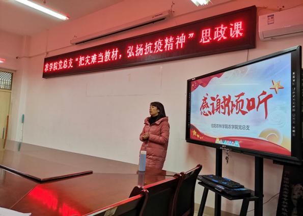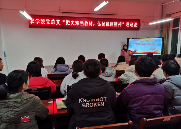 12月4日下午,我院党总支副书记王付娟在2A316会议室为学生党员讲了一堂主题为《把灾难当教材,弘扬抗疫精神》的思想政治课,全院40余名学生党员参与此次学习。
