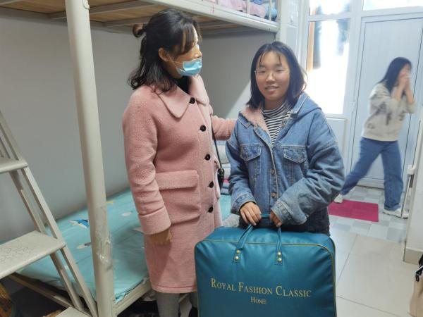 活动伊始,老师们代表学校向学生送上了包括棉被在内的充满爱心又防寒御暖的冬季物品,并详细了解学生们的在校学习和生活情况,询问他们的生活困难,叮嘱学生们在寒冷季节要注意保暖,保重身体。活动中,老师们还深入到学生宿舍,查看学生们的寝室内务及安全卫生,张贴防诈骗宣传单,强调防诈骗的必要性和防骗技能,提醒同学们进一步提高安全防范意识,避免上当受骗。活动最后,杜丽书记表示:此次“冬季送温暖”给学生们发放棉被等物资活动是学校学生资助工作的一个重要组成部分,体现了学校和领导老师们对同学们的关怀与关爱,希望同学们能够珍惜当下,不负韶华,在温馨、和谐的校园环境中努力地成长成才。