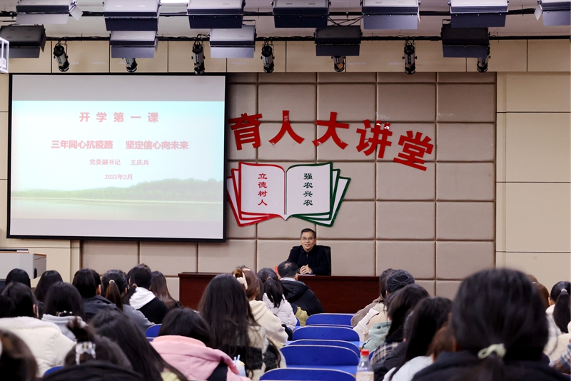 为深入贯彻习近平新时代中国特色社会主义思想和党的二十大精神,按照《中共河南省委教育工委办公室 河南省教育厅办公室关于组织全省学校上好2023年春季开学思政第一课的通知》要求,2月17日下午,党委副书记王庆兵在一教E101教室为学生代表讲授2023年春季开学思政第一课。党委宣传部、党委学工部、校团委等职能部门负责同志参加。党委学工部部长靳潢主持报告会。