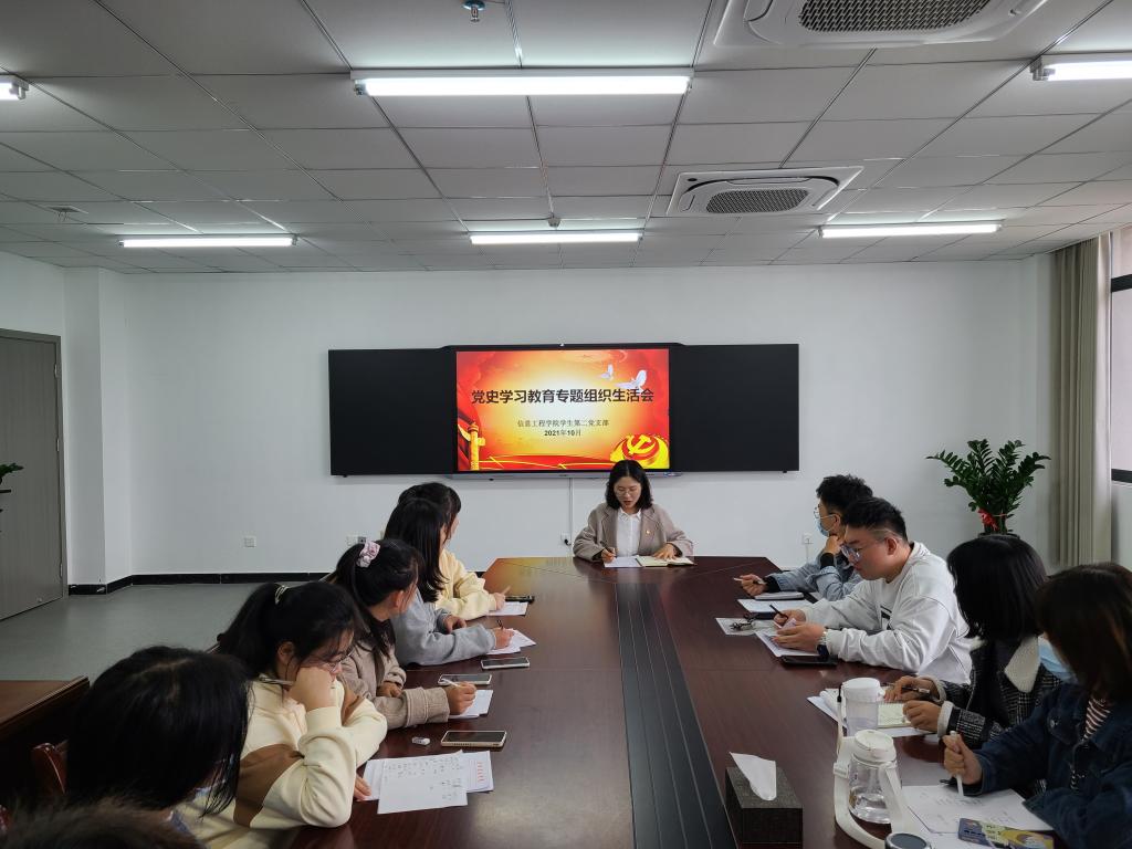 2021年10月19日,信息工程学院学生第二党支部召开党史学习教育专题组织生活会,旨在深入学习贯彻习近平总书记在庆祝中国共产党成立100周年大会上的重要讲话精神,丰富拓展党史学习教育的内涵,推动党史学习教育往深里走、往实里走。会议由支部书记严舒平代表党支部委员会报告半年来学生第二党支部工作情况特别是开展党史学习教育情况,并通报支委会检视问题情况。