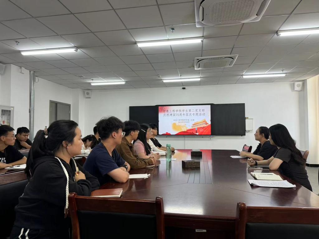 9月29日,为庆祝中华人民共和国成立75周年,传承红色基因,弘扬爱国精神,信息工程学院学生第二党支部组织举办庆祝中华人民共和国成立75周年主题党日活动,主题党日活动内容为“我为祖国唱首歌”和爱国知识、廉洁知识竞答。全体党员与部分积极分子积极参与,共同为祖国母亲庆生。