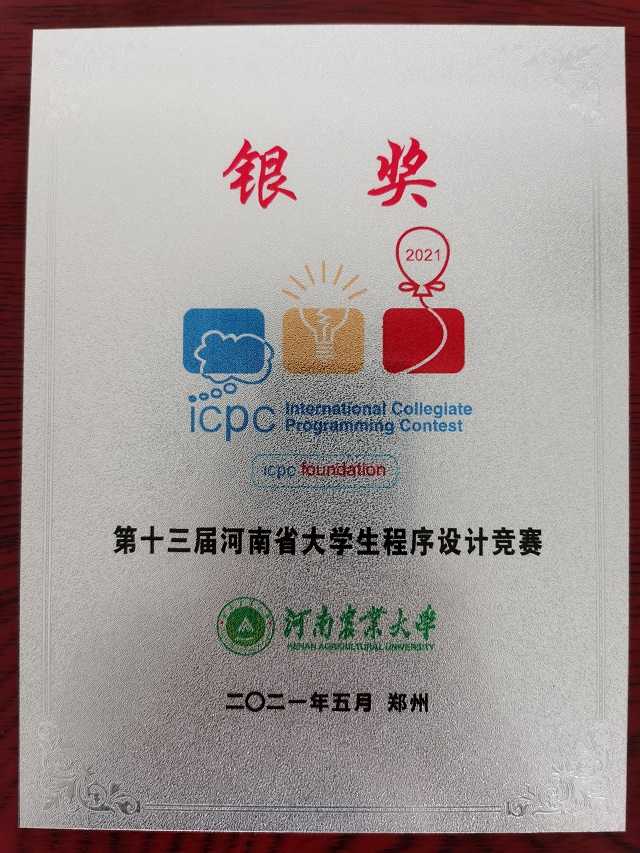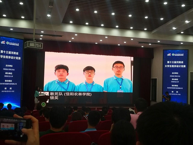 由河南省计算机学会主办的河南省第十三届ICPC大学生程序设计大赛,于2021年5月22-23日,在河南农业大学举行,来自全省43所本科院校、232支队伍参加了比赛,大赛共设24个金奖、48个银奖和69个铜奖。