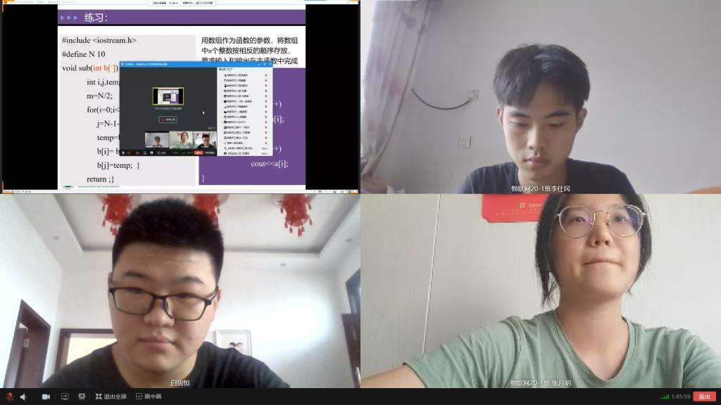 9月6日,学院教学督导组在双创615办公室集中开展线上督导活动,分别听取了青年教师的离散数学、云计算与大数据,外聘教师的操作系统等课程。对线上教学出现的个别教师声音小、互动少,个别班级学生到课不及时等问题进行了及时反馈。