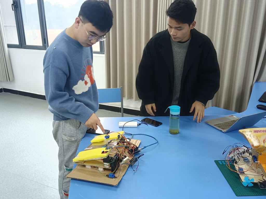 赛前,参赛师生拟定了详细的竞赛方案,学院给予了大力支持。信息工程学院学院院长商信华亲临竞赛现场进行指导,竞赛指导教师姜明富、张克旺、龙意忠、吴鹏老师等组织学生积极备赛。比赛过程中,通过线上PPT讲解、展示及答辩三个环节,充分展示了各组设计作品的特色和创新点,我院参赛选手的表现获得了评委的一致好评。