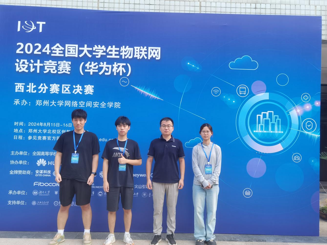 8月16日,2024 年全国大学生物联网设计竞赛(华为杯)西北分赛区决赛在河南省郑州市郑州大学北校区举行,信息工程学院物联网工程专业选派1支竞赛团队参加了此次比赛。经过激烈角逐,物联网工程专业崔梦洋、刘俊、李双敏(指导教师:张克旺)获得了西北分赛区二等奖赛。