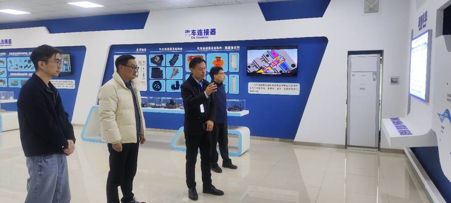 在河南省鼎润科技实业有限公司,在企业负责人吴总带领下,何勇一行参观了企业展厅、生产车间,详细了解企业高速通讯连接器等产品的生产工艺、加工流程。座谈会上,副院长何勇对企业前期来校开展的校园招聘表示感谢,对公司近年来在工业互联网、智能制造领域取得的成果表示钦佩,双方围绕校企共育创新型人才、企业用人需求等方面展开交流。