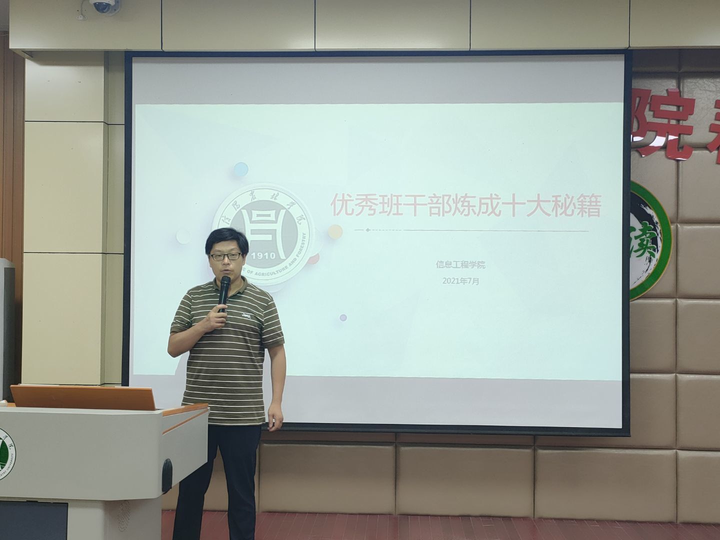 大会开始,由主持人宣布工作表现最优秀的部门、部门优秀人员名单及我院本学期各项比赛获奖人员名单,由朱猛,严舒平及各位辅导员依次给上台获奖的人员颁奖并合影。接下来,由优秀部门安全部的代表蔡启志同学发言。最后,由朱猛作了题为《优秀班干部炼成十大秘籍》的讲座,向全体学生会干部在工作中所取得的显著成果给予肯定,并对未来的发展指明了方向、提出了要求,希望同学们加强责任意识、群众意识和奉献意识,强化学习,认真反思不足之处,对未来学生组织的工作有更明确的规划,做优秀的信农人、信工人。