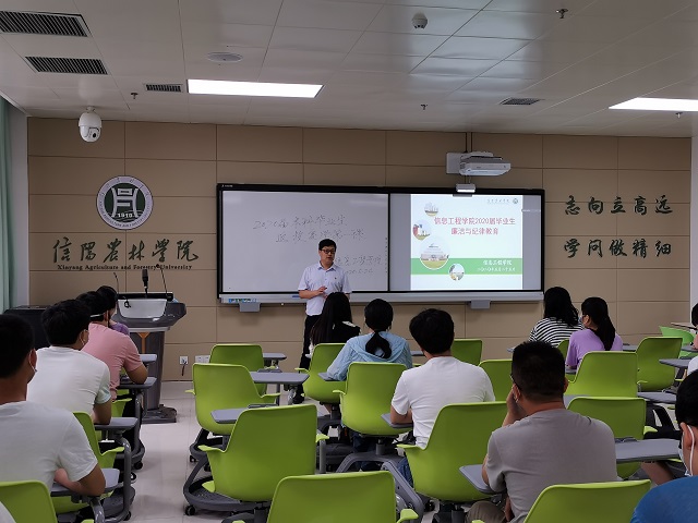 为了牢固树立大学生廉洁自律意识,扣好人生“第一粒扣子”,为走入社会打下坚实的基础,2020年5月25日,信息工程学院组织毕业生召开了线上线下廉洁自律主题教育,学院全体毕业生参与,院党总支副书记朱猛主讲。