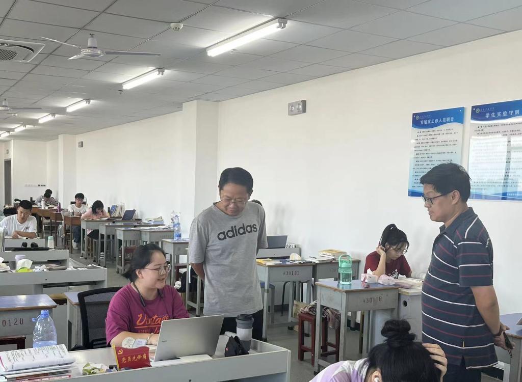 为关心国庆假期留校学生在校情况,确保留校学生度过一个安全、祥和的国庆佳节,10月3日上午,院党总支书记梁其宇、党总支副书记朱猛及辅导员老师一行深入考研自习室及学生宿舍,实地走访调研在校学生学习、生活和保障情况,为学生送上节日慰问和祝福。
