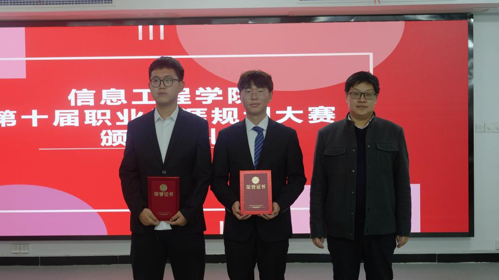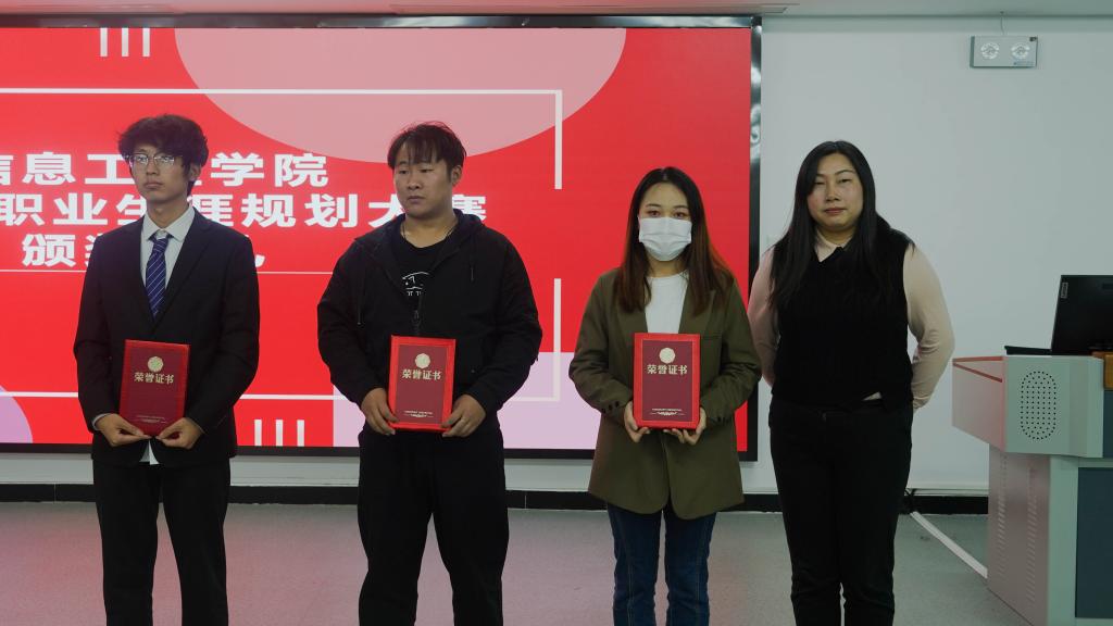 信息工程学院积极组织开展了初赛选拔,经过学院初选确定了11位选手参赛。赛场上,选手们紧扣“筑梦新起点·职赢新时代”的主题,依据自身兴趣爱好与专业发展方向,按照“自我认知、职业认知、职业决策、计划与路径、评估与调整、职业道德”六个方面展示了自己的职业生涯规划设计。选手们思路清晰,语言流畅,内容充实,充分展示了自己的职业规划,获得了评委老师和观摩学生的一致好评。评委老师根据选手们的表现,从《职业生涯规划书》、《职业生涯人物访谈报告》、PPT现场展示及职业角色情景模拟四个方面进行了打分。最终,张金磊同学获得特等奖,杨康镭和宋明祥同学获得一等奖,李敖、赵四龙和季冉同学获得二等奖,林紫滢、王梦珂、何春晓、周俊和李静婵同学获得三等奖。