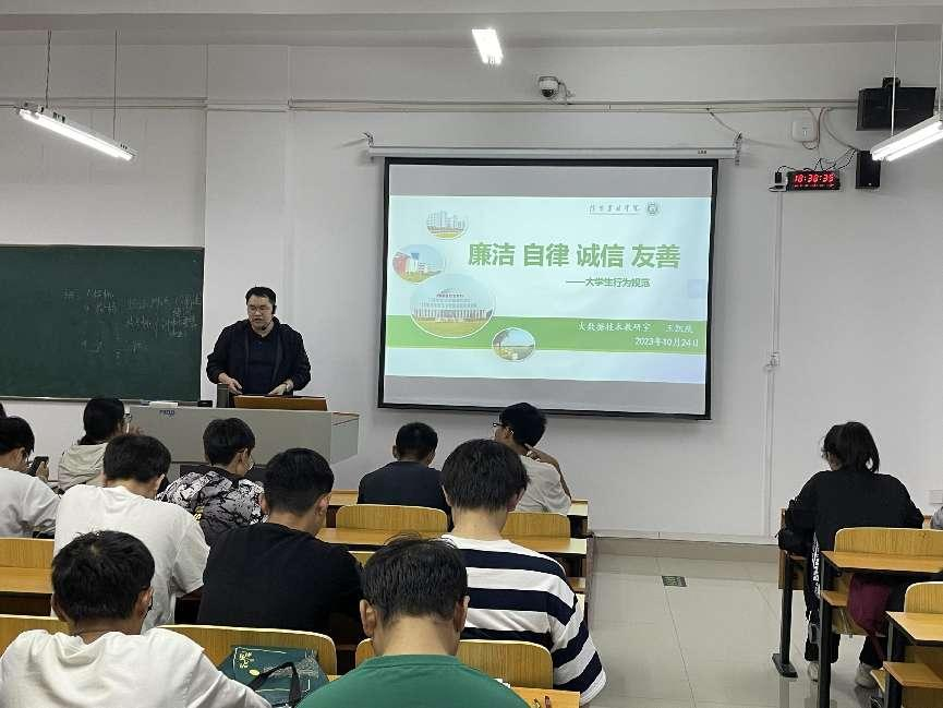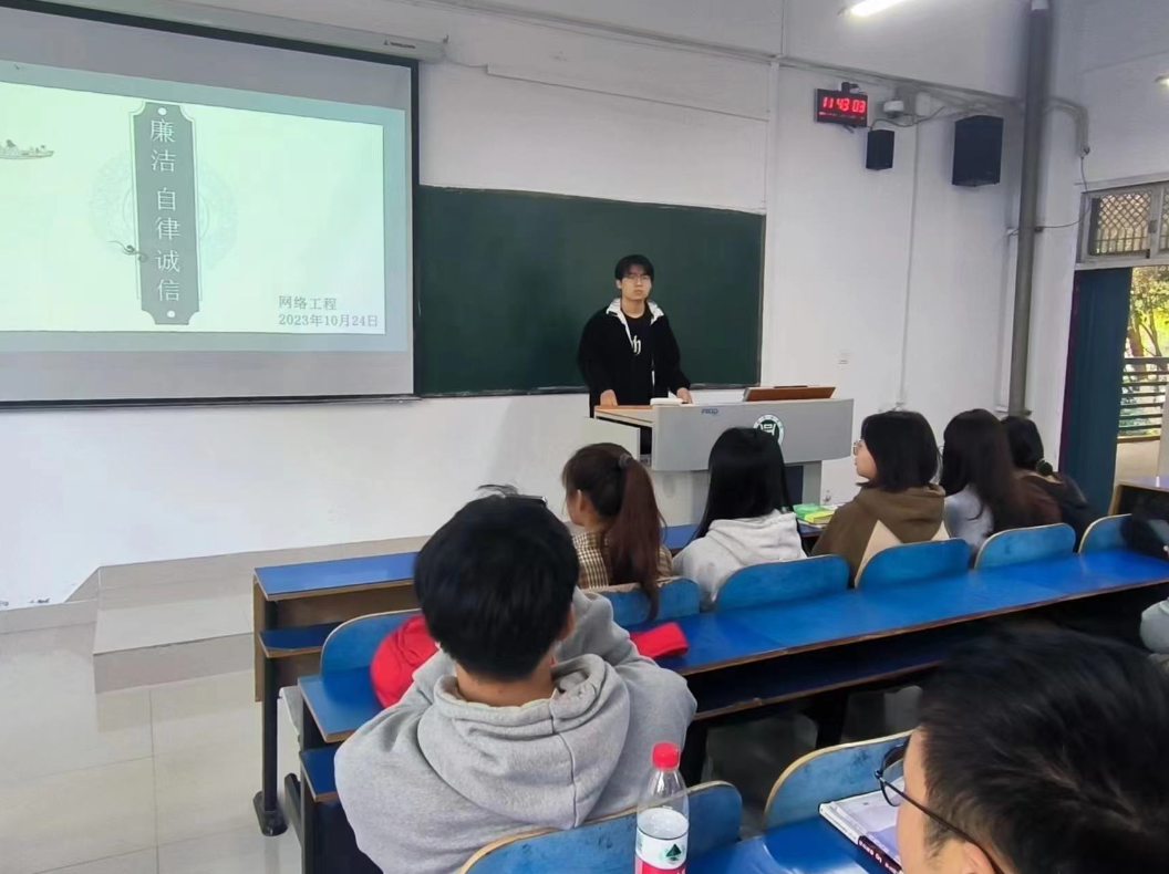 为帮助学生树立正确的人生观和价值观,扣好人生的第一粒扣子,让廉洁之风走进校园,营造学校清廉的教育文化氛围,11月1日-6日,信息工程学院组织各班开展了廉洁教育主题班会。主题班会课上,辅导员给学生讲解了党风廉政建设的相关理论知识。在辅导员的指导下,学生展开讨论并纷纷发表了自己的观点。各班级结合本次活动的主题,在主题班会课上通过宣讲典型清廉事迹,学习清廉人物精神,弘扬清廉文化,使学生进一步增强公民意识、法律意识、廉洁意识,养成道德高尚、廉洁正直、遵纪守法等良好品质。主题班会上,学生们欣赏了清廉人物的优秀事迹视频,并纷纷表达自己的感想,进行了激烈地讨论。同时,也积极分享了古今清廉人物故事,深深被这种精神所感动。此外,同学们也观看了贪污腐败的典型人物案例,辅导员老师也针对他们的事迹对学生做了警示教育。此次廉洁教育主题班会,在学生、学校之间架起传播廉洁文化的桥梁,营造了崇尚廉洁的校园氛围,全面提升广大学生的廉洁文化素养,促进学生牢固树立正确的人生观、世界观和价值观。(案例警示、案例研讨和主题班会)