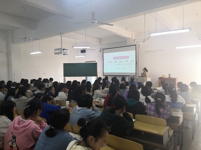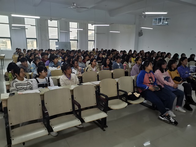 李老师从认识自己、接纳自己及改造自己三个方面入手,对向同学们详细阐述了“五自”教育的内涵——自知、自爱、自律、自尊、自保。此外,李老师着重强调了女生们要夯实专业基础、理性对待感情、自觉抵制不良诱惑及学会自我保护。珍惜四年的大学生活,不断提升自己的综合素质。最后,李老师从培养健康心态,制定学习目标,提高专业技能,培养兴趣爱好,树立正确价值观及学会感恩六个方面寄语19级全体女生,祝福大家成为洁身自好、自力更生、内外兼修的女孩。