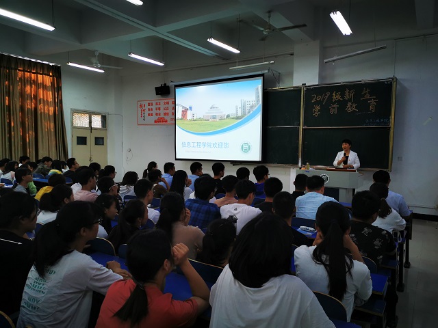 2019年9月24日上午十点,信息工程学院于一教E102教室举行了新生入学教育之学前教育讲座,院长商信华教授主讲,副院长李友国主持,19级新生辅导员及19级全体新生参会。