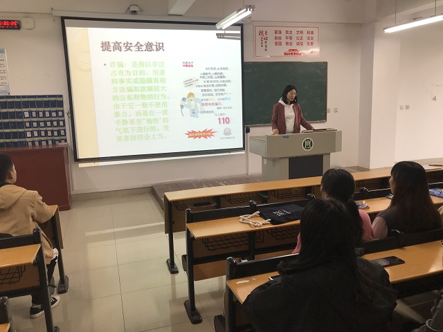 为提高对诈骗的辨识能力及防范意识,信息工程学院于2019年4月3日15点在二教109教室召开了以校园反诈骗为主题的班会,18级辅导员严舒平主讲。