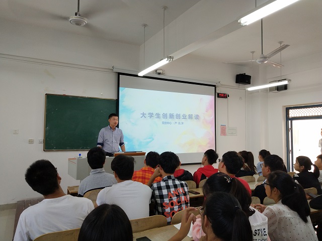严老师首先从不同的视角诠释了创业者的含义,并详细讲解了创业者的特征、基本条件以及应具备的素质,引导学生要认识自我,明确目标,勇于创新,做出一番成就。接着,严老师讲道创业的本质是通过依托资源,创造更多的价值。对于应该如何正确地看待创业,他总结为以三个部分:一、创业需要理性;二、创业离不开超群的能力;三、创业需要掌握大量的资源。最后,严老师提到国家为大学生创新创业提供了很多优惠政策,学校也有多种途径实现创业,比如大学生创新创业训练项目,挑战杯大赛,创业培训,创业基地。严老师指出,大学是一个很好的平台,希望同学们能抓住机会,勇于尝试,创造出属于自己的一片天地。