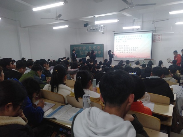 2019年12月11日19时,信息工程学院团总支学生会于二教304教室举行了主题为“知党史,弘文化”的一站到底知识竞赛决赛。院党总支副书记朱猛老师和辅导员吉秉彧、许华瑾、严舒平到场观看。