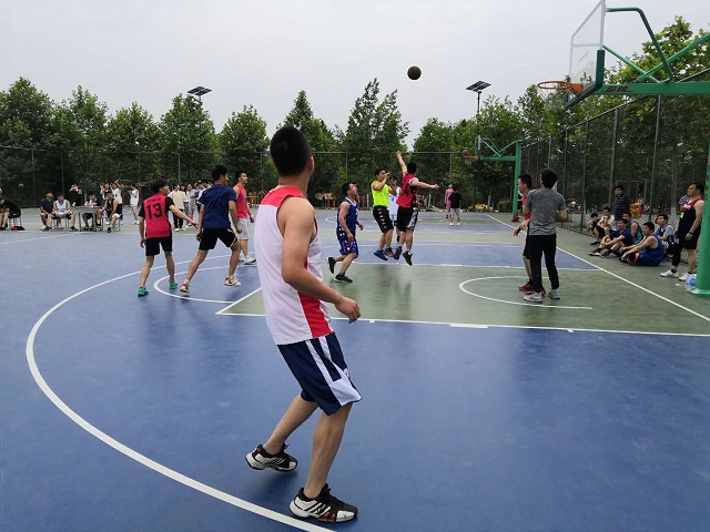 下午5点30分,球员们已经到场做好赛前准备工作。随着哨声响起,各个队员全身心投入紧张的比赛中。赛场上的队员们用心投入,全力以赴,愈战愈勇。在场同学激情澎湃,高声呐喊,不断为队员们打气助威,现场气氛热烈。赛场上,双方队员带球过人,动作连贯,配合默契,引来在场同学阵阵喝彩。我院19届毕业生队员以最佳的状态争取得分,教职工的球员们也毫不示弱,即使在比赛的最后阶段,还时不时的上演抢断、传球、上篮等精彩动作。最后,我院教职工代表队取得了本次比赛的胜利。